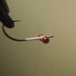 1) Pierce you barbell Eyes-n-Tube onto the hook and wrap a base layer of thread where the eyes are to be located.