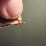 ![]() Step #3 3) Tie approx. 60 strands of squirrel tail onto the bend end of the hook. |