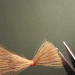 ![]() Step #9 9) Tie another 80 strands of squirrel tail onto the hook shank approx. 1/8 inch from the eye of the hook. |