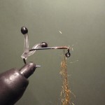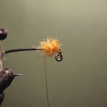 ![]() Step #3 3) Wrap a small amount of dubbing onto the bend just below the eye of the hook. |