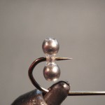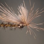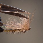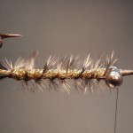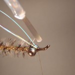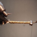 8) Tie approx. 50 strands of deer hair above the eyes to form and head and wing.