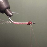 2) Put a base layer of thread onto the hook and add a dab of cement.